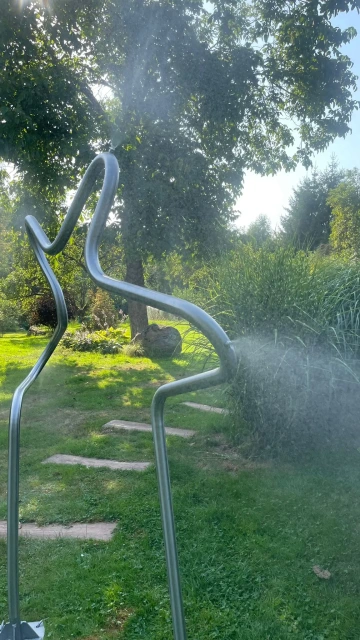 Naši inženýři navrhli mlžítko s originálním organickým tvarem, který svou formou připomíná přírodní keř. Toto řešení elegantně kombinuje funkčnost s estetikou a dokonale se integruje do herní zahrady, kde děti tráví svůj volný čas.